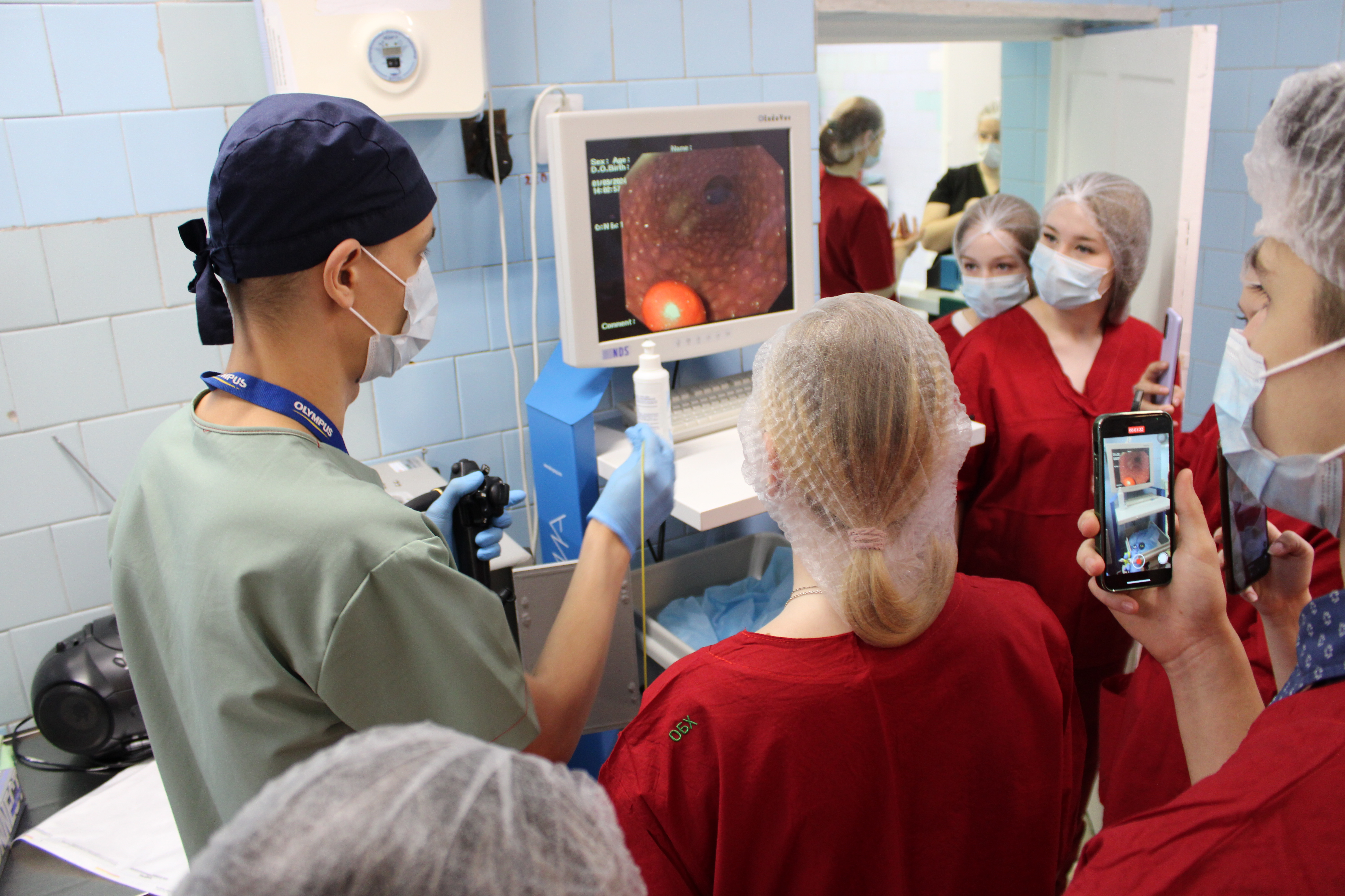 «Диагносты» познакомились с работой современных аппаратов УЗИ, рентгена, компьютерного томографа. А будущие эндокринологи в своих руках подержали современные шприц-ручки и научились делать инъекции, пока на тренажере. А потом стали свидетелями установки инсулиновой помпы реальному пациенту.
