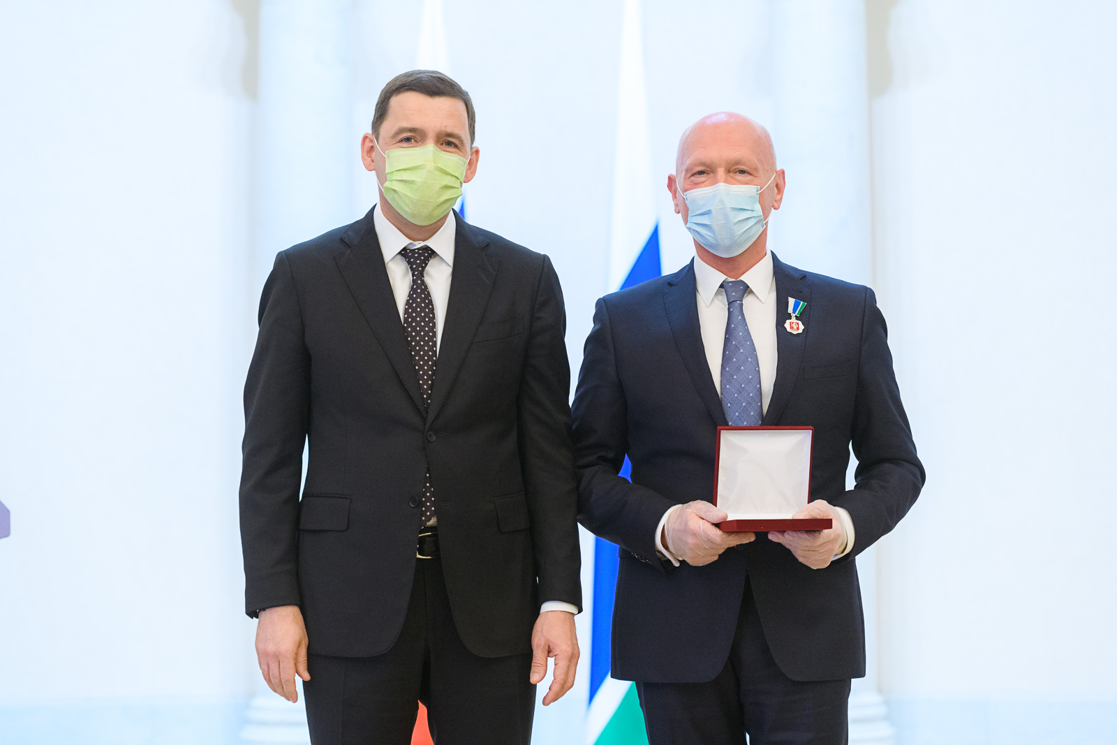По традиции глава региона вручил награды уральцам. В числе награжденных — главный̆ врач городской̆ клинической̆ больницы №40 Александр Прудков. Ему вручен знак отличия «За заслуги перед Свердловской̆ областью».