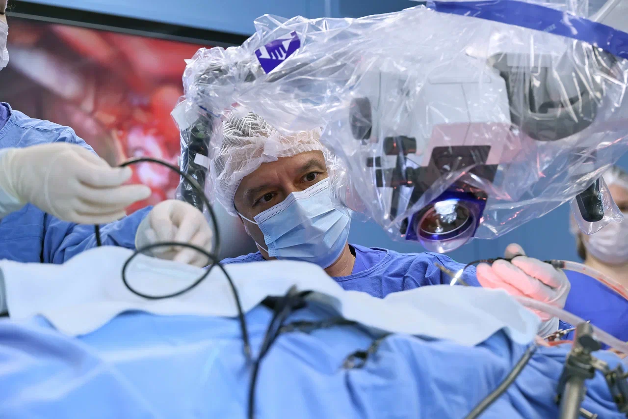 «В ходе операции с помощью инновационной системы можно выполнить диагностику сосудистого русла во время оперативных вмешательств по поводу часто встречающихся патологий сосудов: артериовенозных мальформаций и аневризм сосудов головного мозга.